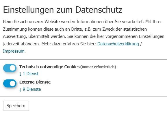 Scrollen Sie dazu ganz nach unten (zum Ende dieser Seite) und klicken Sie auf Datenschutzeinstellungen. Bitte aktivieren Sie die "Externen Dienste" –> speichern. Im Anschluss die Seite aktualisieren oder schließen und noch einmal neu öffnen.